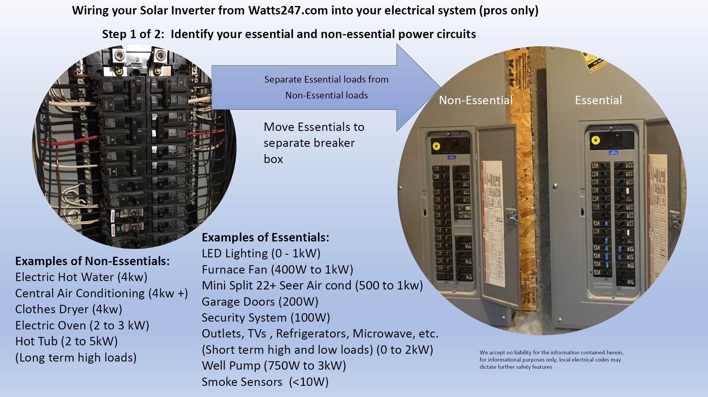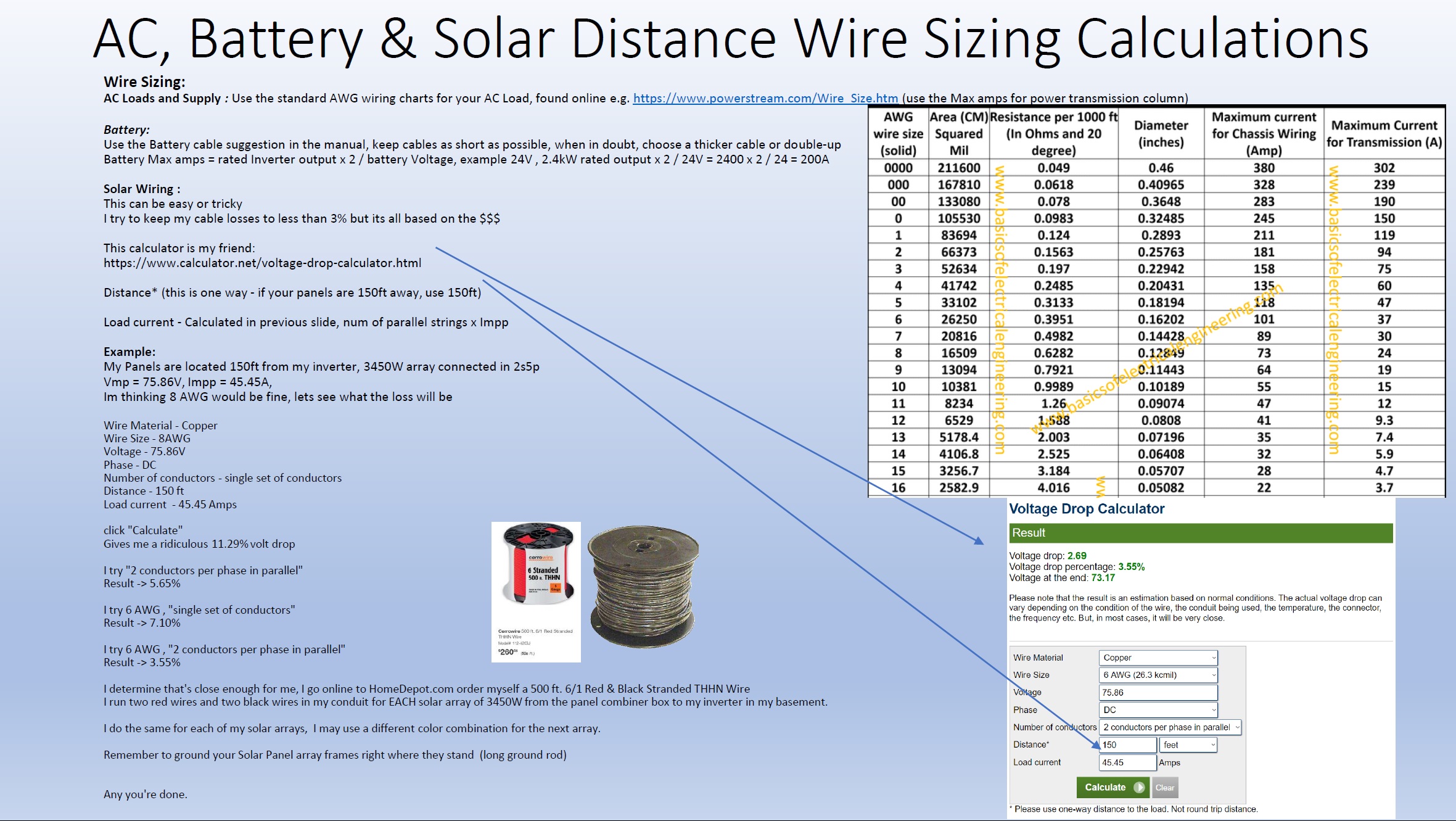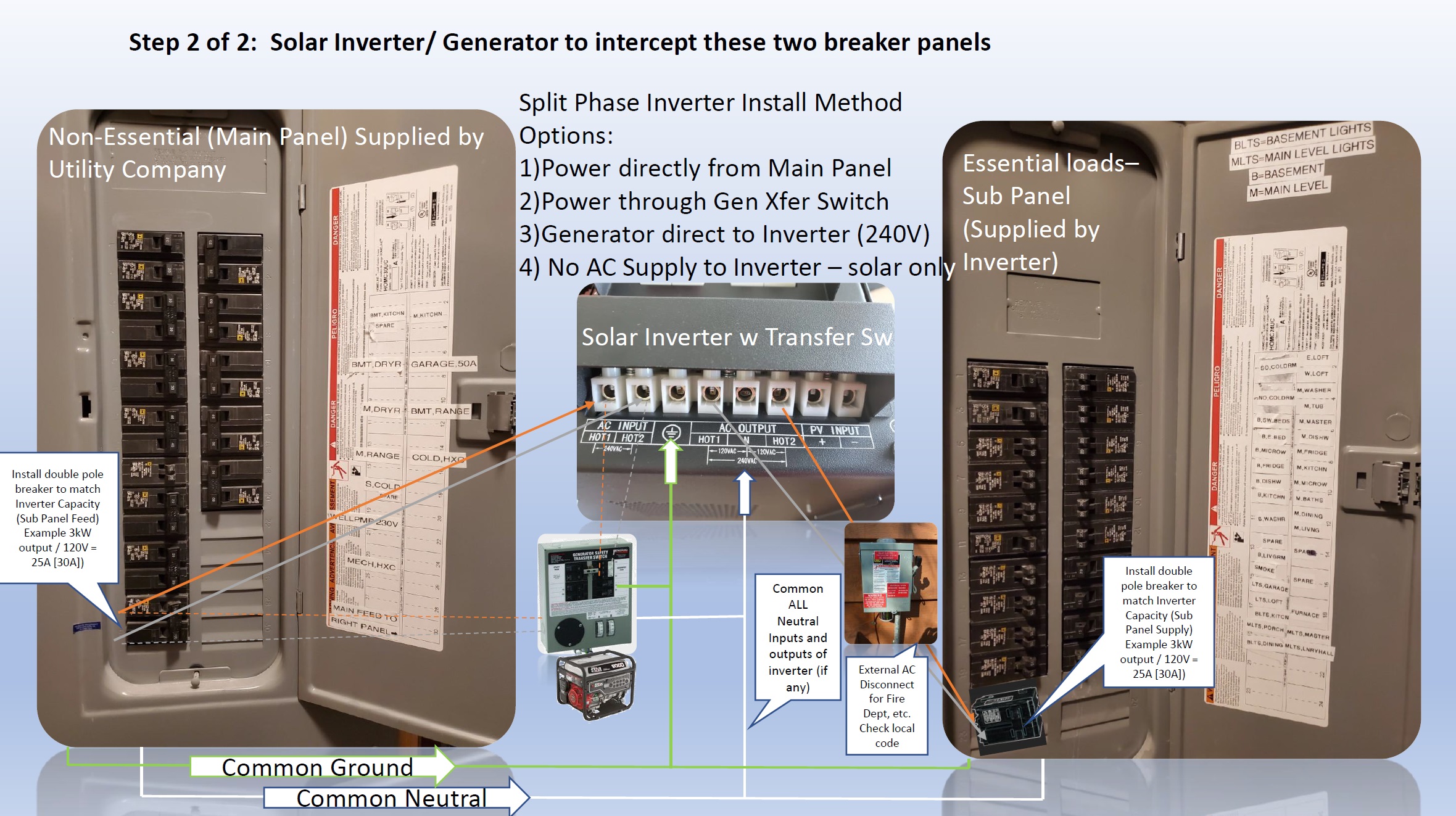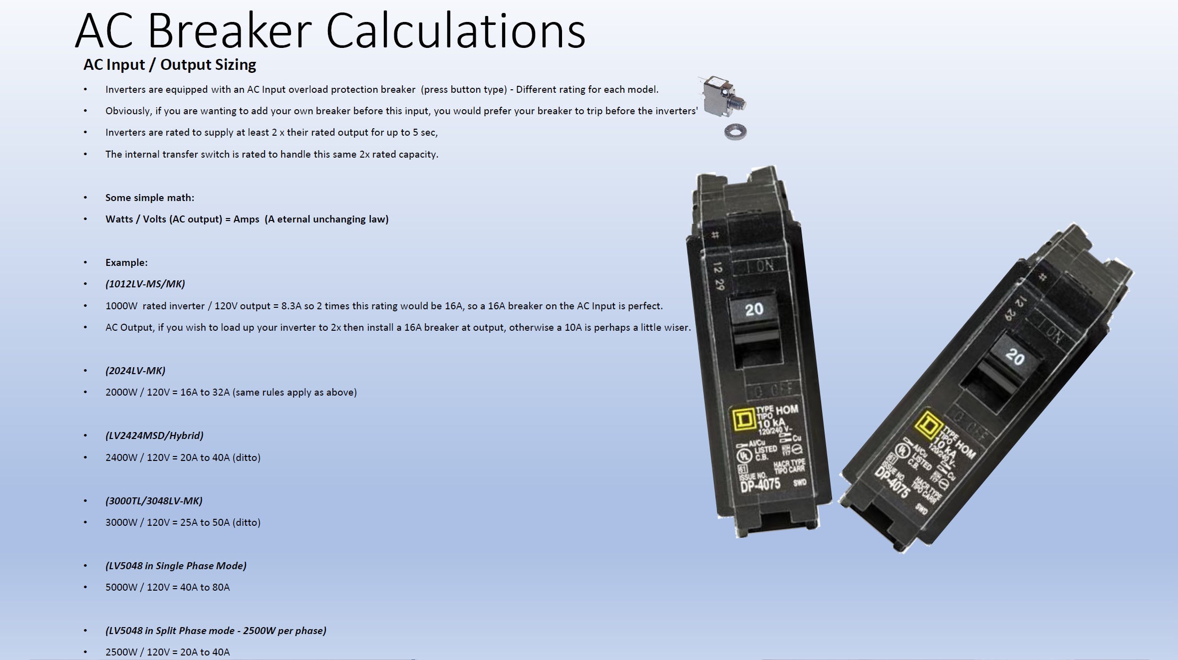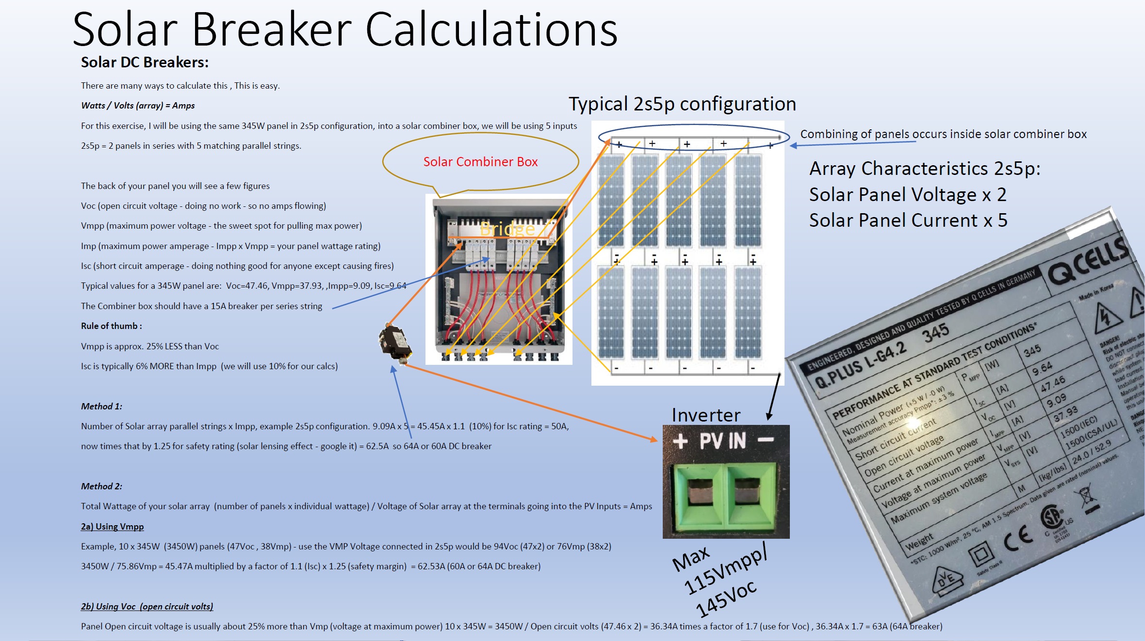 Wiring in to Electrical Panel 1 of 2Wiring in to Electrical Panel 2 of 2Generator Charging SettingsSolar Array WiringSolar SizingAC Breaker CalculationsPV Cable Calculation